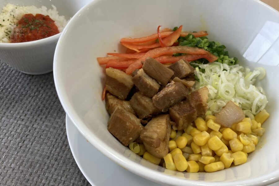 モチモチの特製麺を混ぜ合わせるたびに、幸せな香りが立ち上がる、新感覚のまぜそばです!鶏白湯ラーメン&シメのカレーリゾット