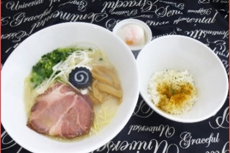 鶏の旨みが凝縮された逸品。麺を食べたら、スープと温玉・カレーパウダーをご飯と混ぜてリゾット風をお楽しみ下さい。