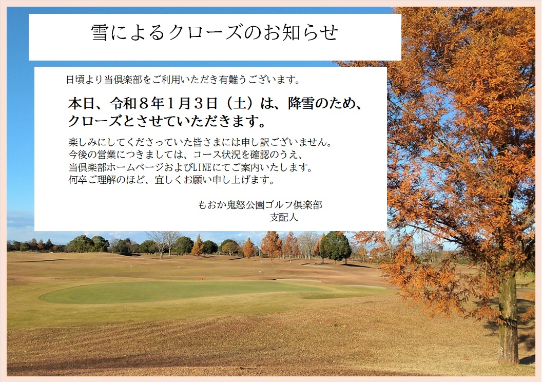 雪によるクローズのお知らせ