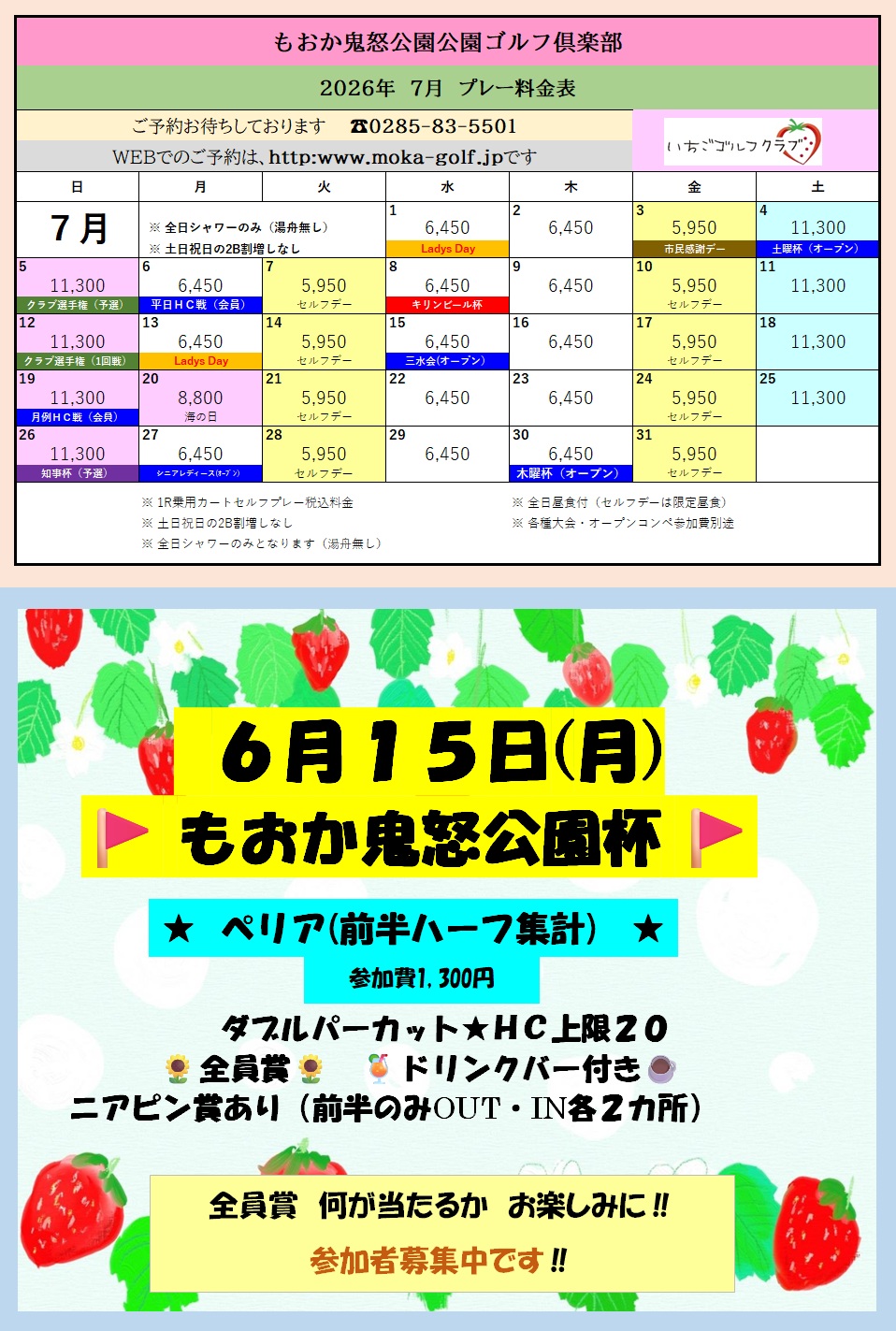 2026年 7月料金表・もおか鬼怒公園杯のお知らせ