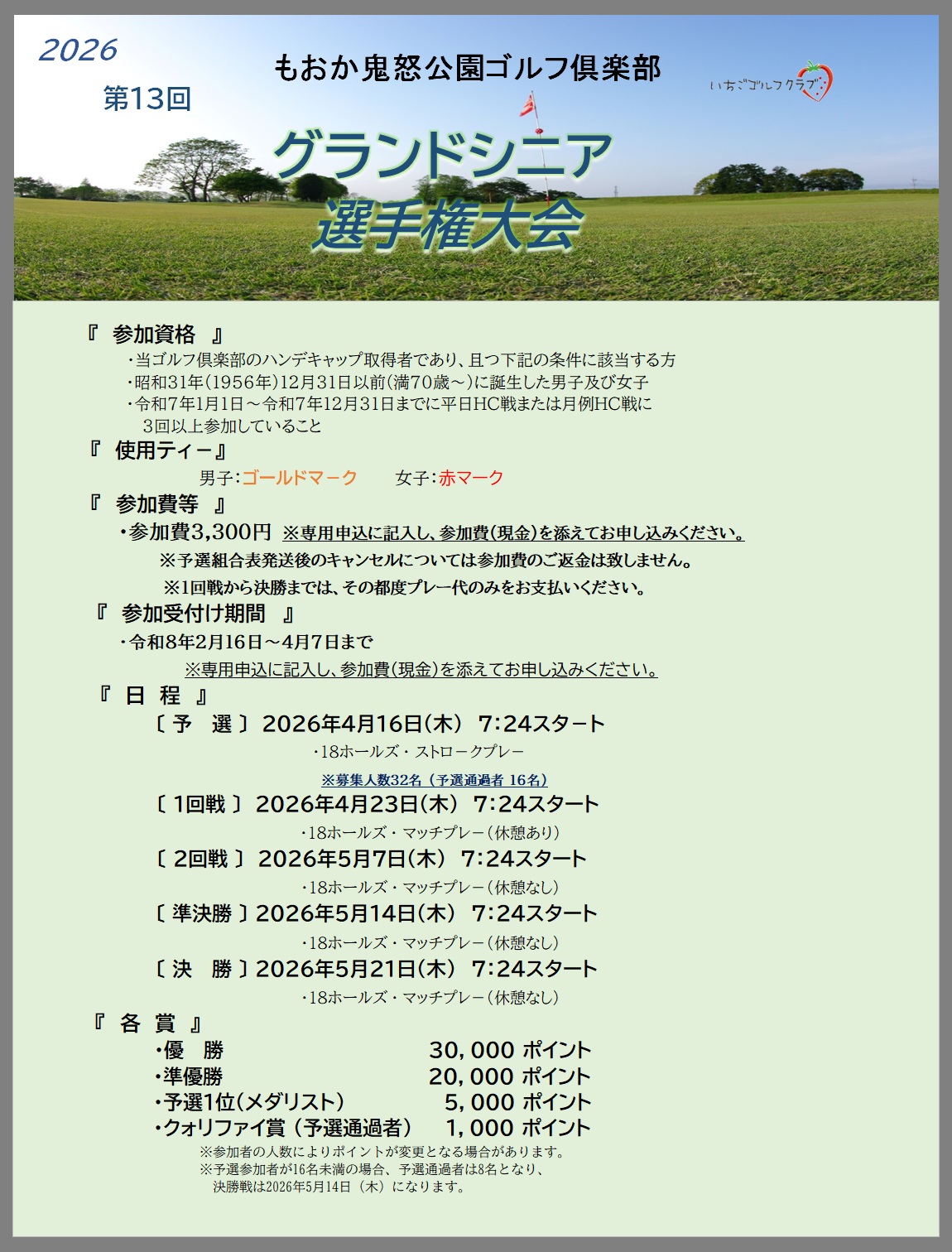 2026年3月4日 / 最終更新日 : 2026年3月4日 wpmaster 重要なお知らせ 2026 グランドシニア選手権 開催のお知らせ 2026 第13回 グランドシニア選手権大会の参加者を募集しております。参加資格をご確認の上お申し込みください。奮ってご参加ください。