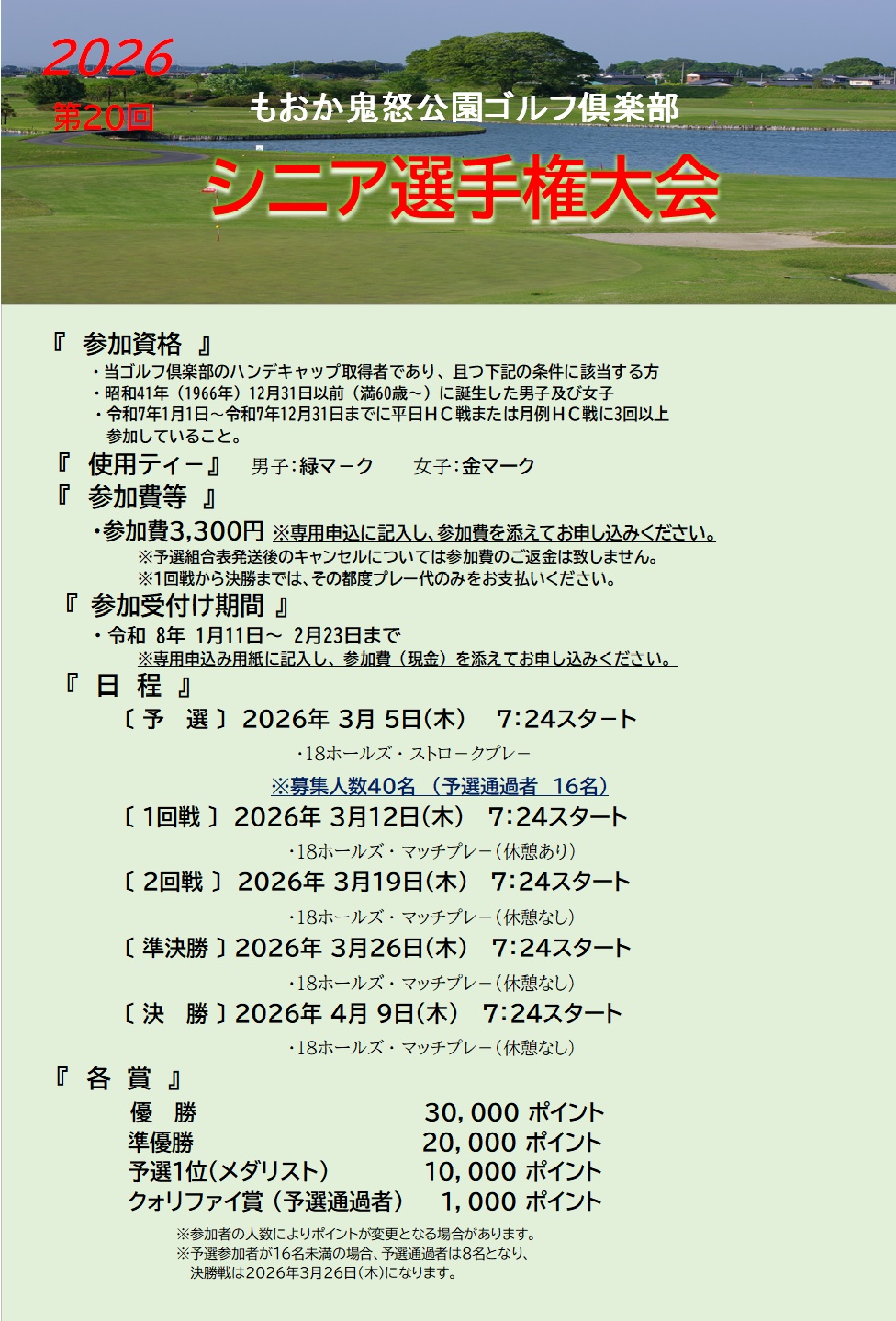 2026年1月11日 / 最終更新日 : 2026年1月11日 wpmaster 重要なお知らせ 2026 シニア選手権 開催のお知らせ 2026 第20回 シニア選手権大会の参加者を募集いたします。参加資格をご確認の上お申し込みください。奮ってご参加ください。